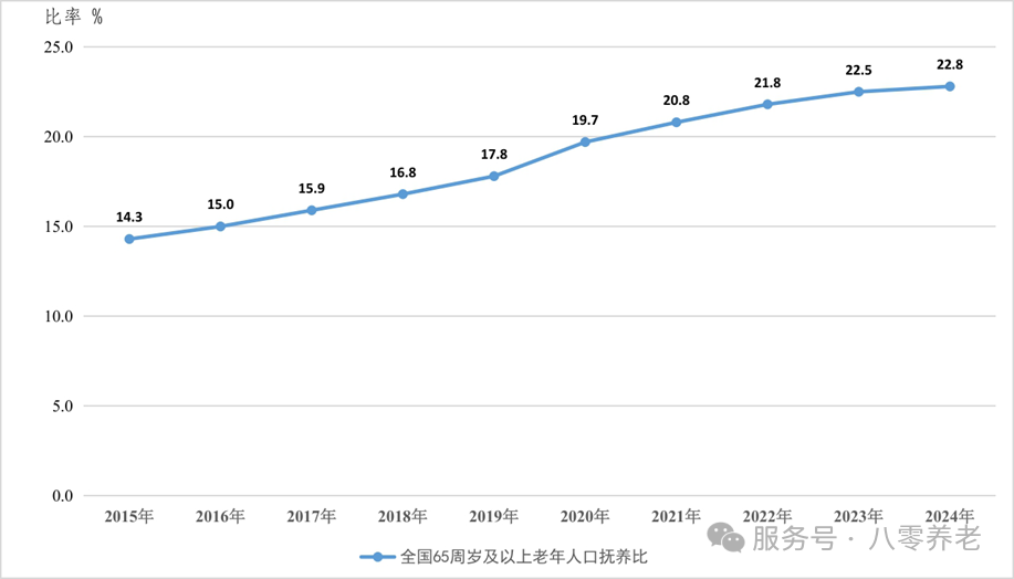 ▲图3 2015—2024年全国65周岁及以上老年人口抚养比